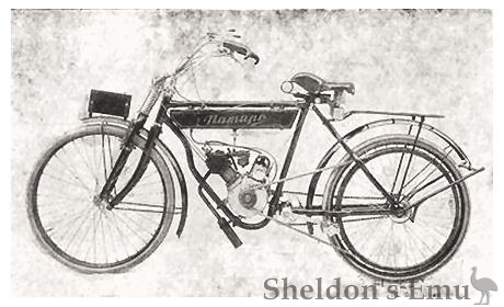 Bernhard Nagle of Maschinen & Motorenfabrik, Stettin, Giesebrechtstraße 6 (now Poland) built 147cc and 197cc four-stroke engines which he fitted to light motorcycles. The smaller version was also sold as a bicycle attachment engine.