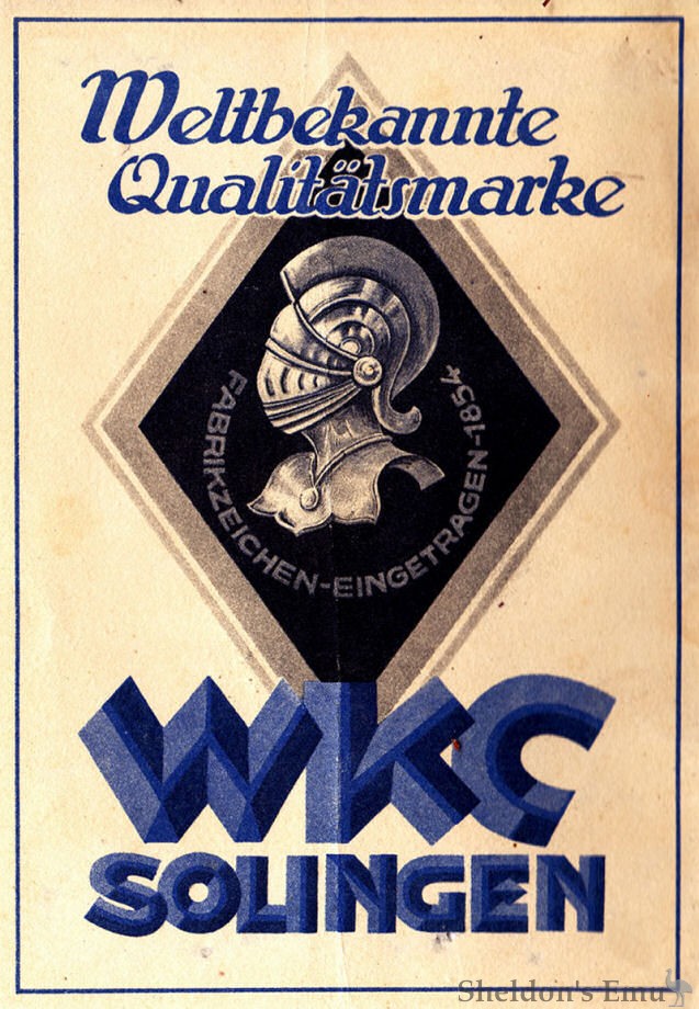 A descendant of an ancient German arms manufacturer, Weyersberg, Kirschbaum & Cie., WKC was well established as a bicycle manufacturer selling some 100,000 units annually when they built their first motorcycles with 250 and 350 Roconova single-cylinder OHC engines. Production halted in 1927, and the huge firm fell into bankruptcy in 1930.