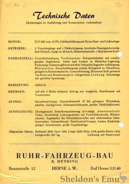 3 forward gears and 1 reverse gear, long-distance-Autobahn (highway)- speed 75 km/h, top speed 85 km/h, rear wheel drive: 1 wheel driven by chain.