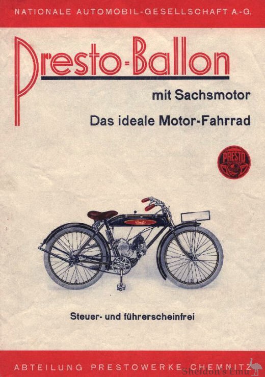 The Presto was produced from 1901 to 1940 in Chemnitz, with the company name changing three times over that period. Founded in 1897 as Günther & Co. it ceased motorcycle production with the onset of the first war, reappearing in 1921 as Presto Werke and then in 1927 became NAG-Presto Werke AG.