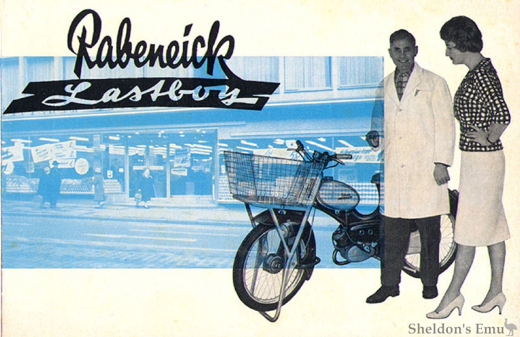 There was a prototype Rabeneick Opti-engined 250cc built around 1955. The factory closed shortly thereafter ¹ and was bought by Hercules in the early 1960s, who sold some of their own products under the Rabeneick brand, and vice-versa - for instance the Lastboy, which Hercules marketed into the 1980s.