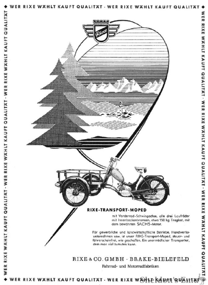 1956-57 Rixe Transport-Moped three-wheeler, Sachs 50cc, 150kg payload.