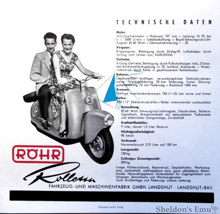 In 1954 the Röhr firm failed and production of the Rolletta scooters was taken over by Hans Glas of Isaria Landmachinenbau, builder of Goggo scooters and the Goggomobil. In 1955 production ceased.