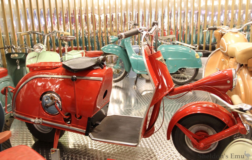Made in Germany from 1949 to 1954. Their 1951 model had a Küchen designed two-stroke engine of 200cc with four speed transmission, telescopic front suspension and swing-arm suspension handled the rear wheel.
