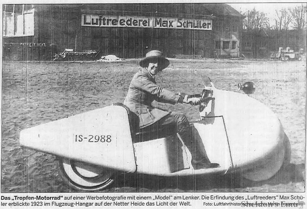 In 1923 the firm used its expertise as a builder of airships to construct motorcycles. These had the appearance of a Zeppelin and were named the Tropfen-Motorrad. Few were made.