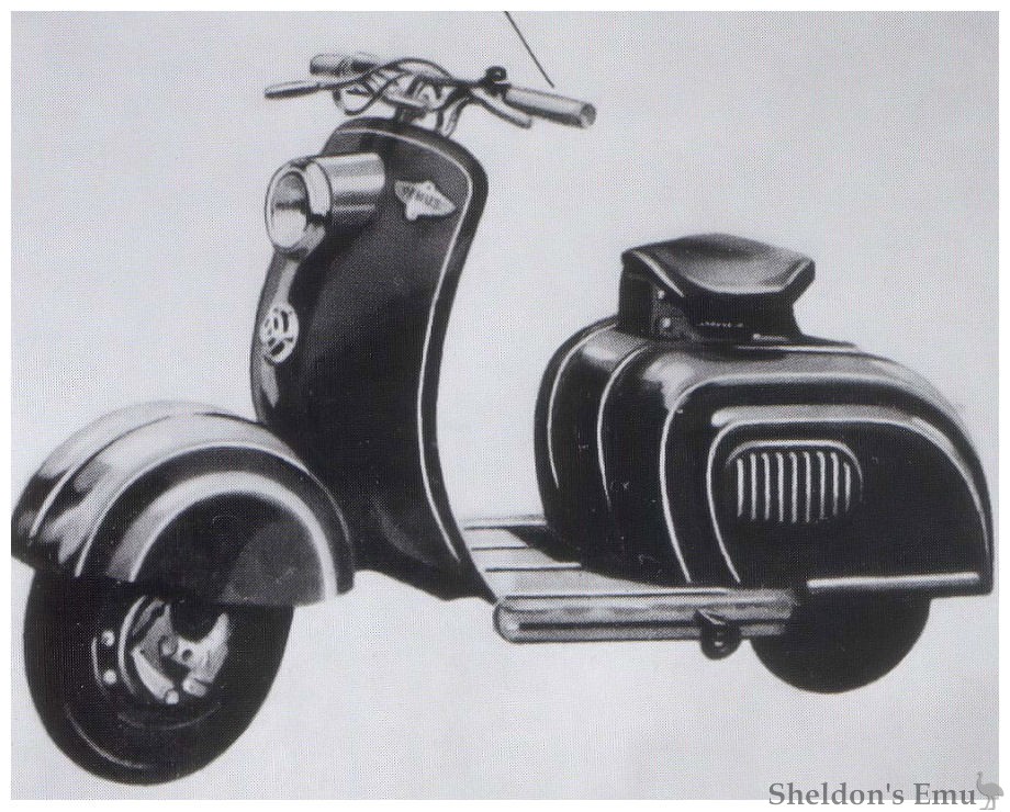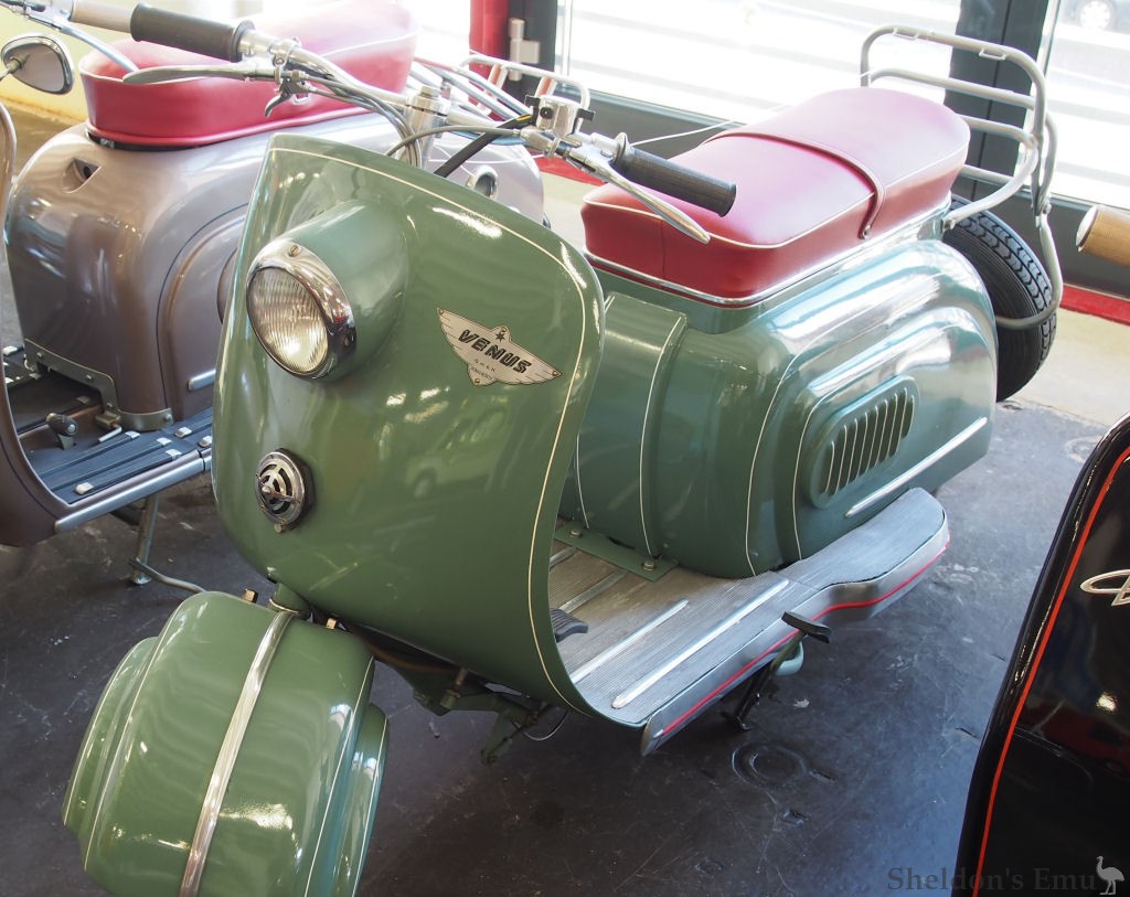 The Venus motor scooter was inspired by the Italian Vespa and came in three different versions using 100cc, 150cc and 175cc single cylinder 2-stroke Fichtel & Sachs engines. Each model had minor styling differences - the DS 100 had a solo seat and no spare wheel, whereas the MS175 had a dual seat and a spare tyre attached at the rear.