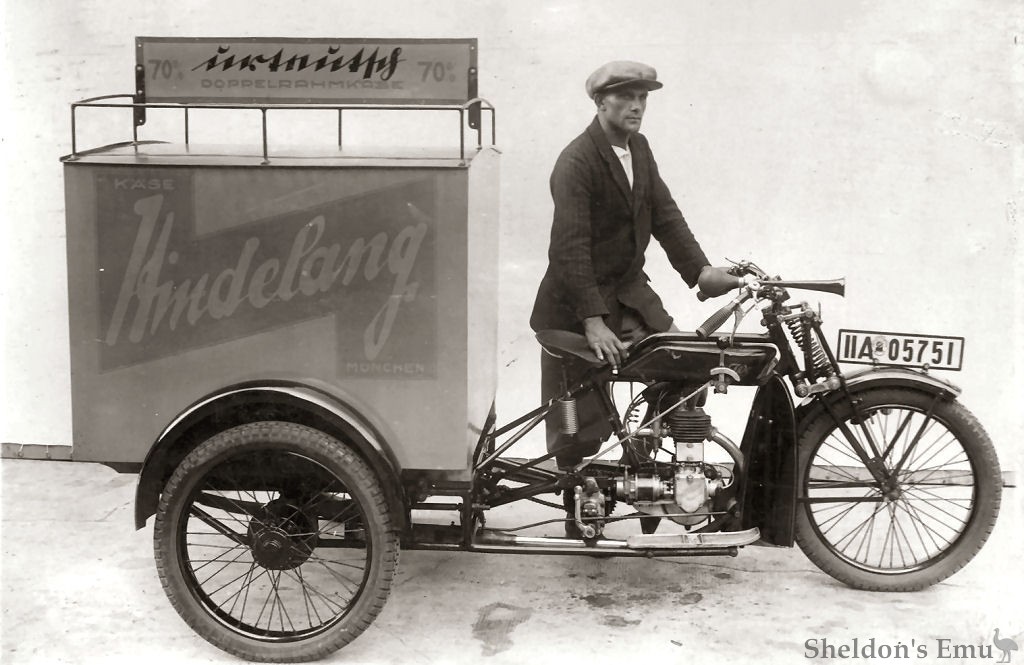 Built motorcycles and commercial three-wheelers using engines of 150cc to 500cc often with a Hurth 2-speed gearbox, and in the early 1930s built a light motorcycle powered by a 74cc Sachs engine.