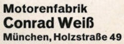 Motorenfabrik Conrad Weiss, Holzstraße 49. München, production 1923-1932.