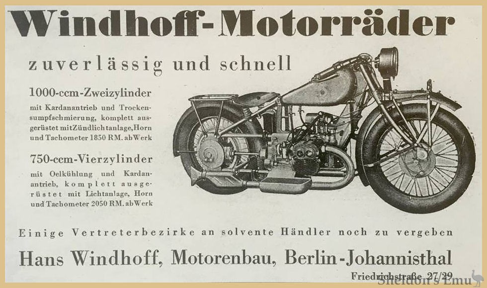 Founded in 1902 by brothers Hans and Fritz Windhoff, the firm manufactured radiators which were installed in many automobiles, trucks and early aircraft. One of the brothers departed to form his own firm in 1907, and Windhoff production moved from the Rhine to Berlin in the same year.