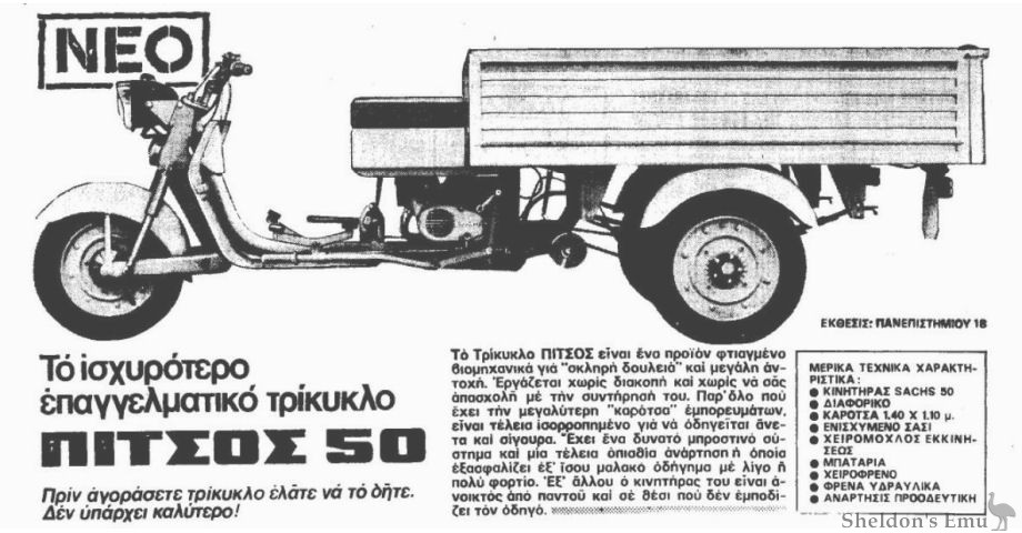 The latter were introduced in 1968 and were available with the company's characteristic cab, and in light van or open versions. They sold fairly well, although despite the company's fame and resources never became serious competitors to MEBEA's models. In 1976 PITSOS was acquired by Germany's Bosch- Siemens Hausgeraete GmbH and its range of products was progressively reduced; this strategy involved termination of production of some "non-core" products, which brought an end to the PITSOS company's vehicle production venture.