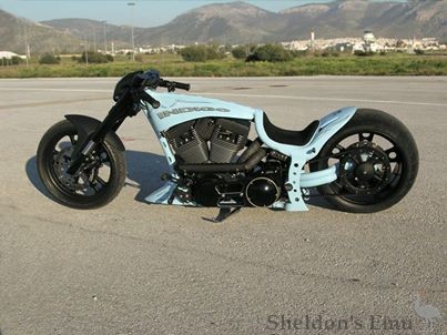 Rockin Customs Unique Motorcycles is an Athens-based custom motorcycle manufacturer. The company has designed and built some extraordinary models, including the Indigo (introduced in 2011), designed to look like a dragster, powered by a 1650cc 120hp Rev Tech engine.