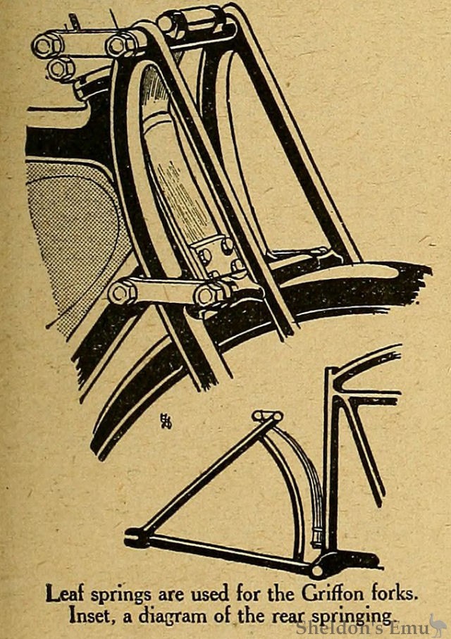 Leaf springs are used for the Griffon forks. Inset, a diagram of the rear springing.