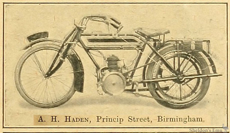 Haden were motorcycles produced from 1920 to 1923 by A. H. Haden of Princip Street, Birmingham.