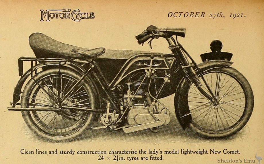MR. A. H. HADEN, of Princip St., Birmingham, was one of the first of our manufacturers to realise the possibilities of Overseas trade in motor cycles and parts. He has, in consequence, reaped the benefit of his enterprise, and it is hardly surprising to find that the greater part of his business is done out of England. New Comet models range from two to eight horse power, and include two and four-stroke engines and special ladies' models.