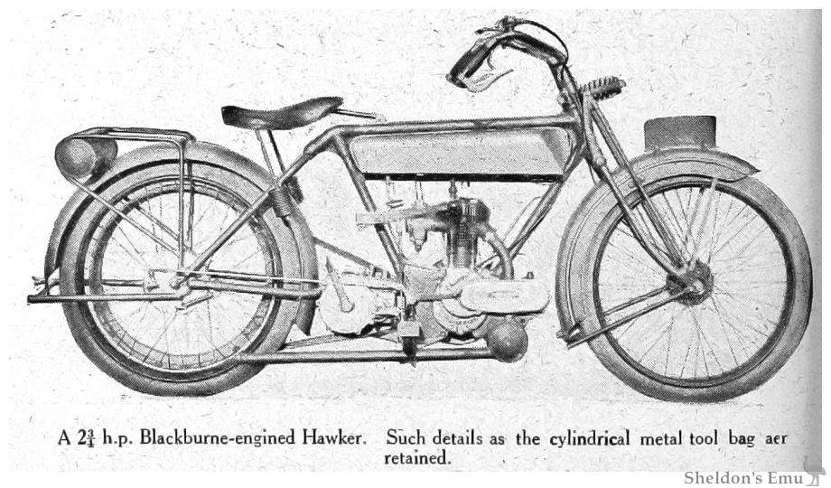 In the case of the 2 ¾ h.p. two-stroke machine, hinged front forks are retained, and all Hawker machines will be fitted with the latest pattern M-L magneto as standard.