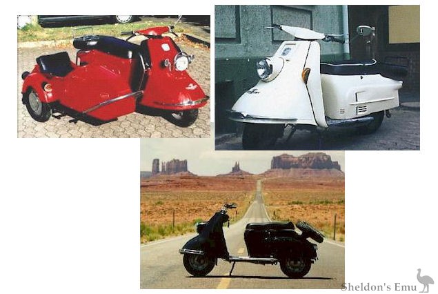 Heinkel was one of the great aircraft designers, responsible for some of the best German fighters of WWII. In 1949 the firm designed their first scooter but production did not begin until 1953 when the Tourist appeared, an advanced design with electric start, 4-speed gearbox and 12 volt electrics. It met with considerable success and was exported around the world - South America, Africa, throughout Europe, and to the United States and Australia.
