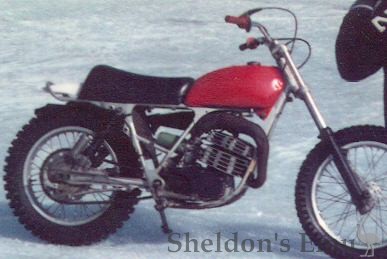 A little known fact is that Sachs built a small number of motocross models based on the 7 speed engine, but with a 5 speed gearbox instead. These were made in very small quantities and sold under the Sachs name in late 1978 to early 1979. They have a little over 10" of suspension travel front and rear. The color was blue with a silver frame. Sachs saw fit to equip them with a floating rear brake, light weight frame, and a large still air box which are some of the differences that set them apart from the enduro models. As a matter of fact, the motocross bike is an entirely different bike.