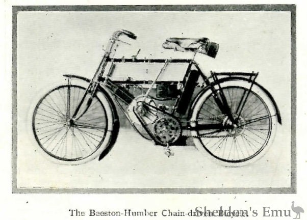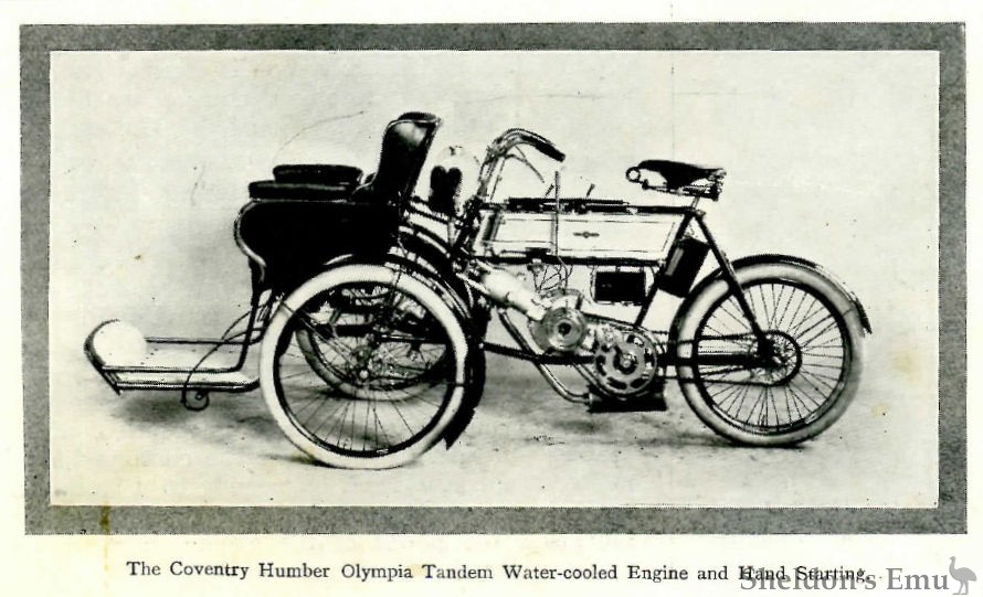Humbers, Ltd., Beeston, have an immense array of cycles of all grades. One standard pattern motor-bicycle is shown. The special features of these machines are well known from the recent London Shows.