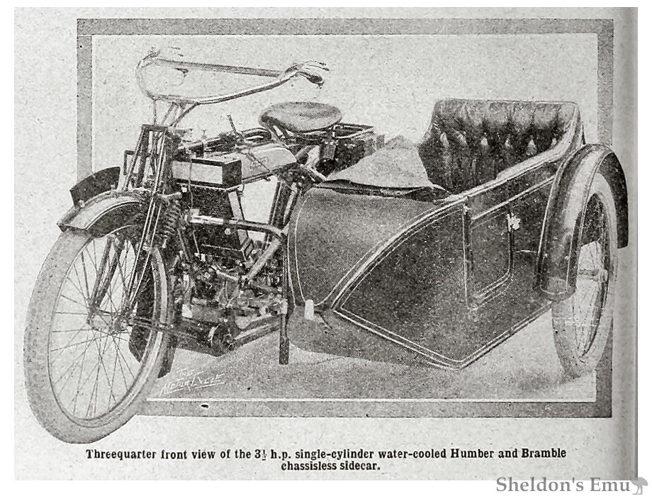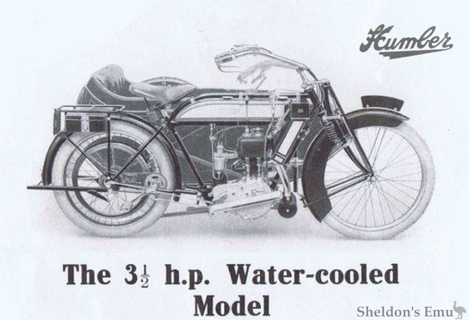 A fines de 1913, y siguiendo la tendencia en motores de cuatro tiempos refrigerados por agua iniciada por Green-Precision y Williamson, Humber presenta en el Olympia Show su modelo 3 ½ HP monocilíndrico. La pionera fábrica de Coventry pretendía ofrecer una máquina liviana para el uso con sidecar teniendo en cuenta las ventajas de la refrigeración por agua cuando se trabajaba a bajas r.p.m. y se arrastraba un peso adicional.