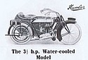 At the end of 1913, following the trend in four-stroke water cooled engines initiated by Green-Precision and Williamson, Humber presented at the Olympia Show their 3 ½ hp model single. The pioneer factory of Coventry intended to provide a light machine for use with sidecars, bearing in mind the advantages of water cooling when working at low rpm and pulling a fair load.