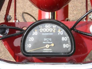 Smiths supplied the instrumentation - with the moderate power of the engine the machine has a top speed of about 75 km/h. The instrument is calibrated to 90kph, and similar units are mounted on a host of other machines.
