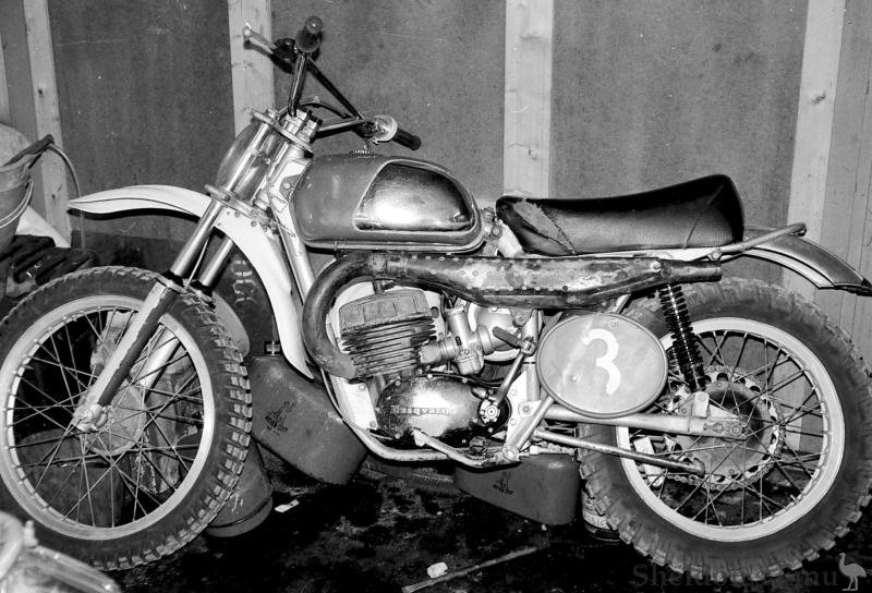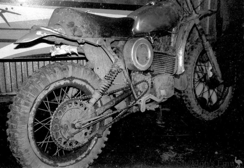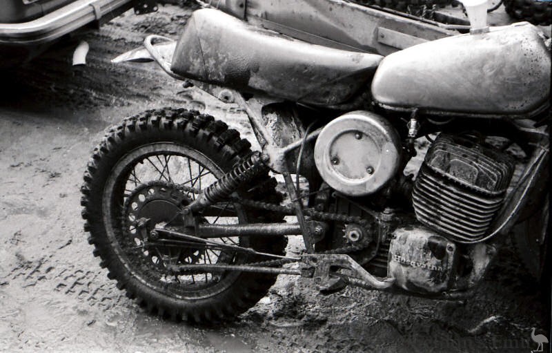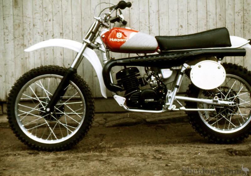 It was a '73 model bought by a mate via an ex-Volvo workmate of his, now a development engineer at the factory. Tatty, yes, but it had a few miles on it at the Drattinge Track in Huskvarna. I was lusting to buy the new 6-speed GP250, but decided to wait a year, to let the other stupid wallys debug it (I'd heard a few whispers that HVA had released the bike 6 months too early, sales of the '74 Mag-engined 5-speeders weren't good, Jap bikes were making rapid inroads). Cracked frames, cracked fork-legs, blown clutches, there were a few bugs.