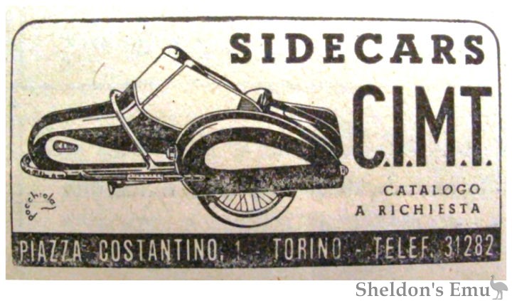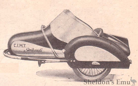 Displayed at the 1947 Milan Show, as reported in The Motor Cycle December 1947 issue. Superbly styled, the sidecar has adjustable suspension.