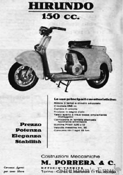 Hirundo 150cc scooter by M. Porrera of Torino, c. mid-1950s.