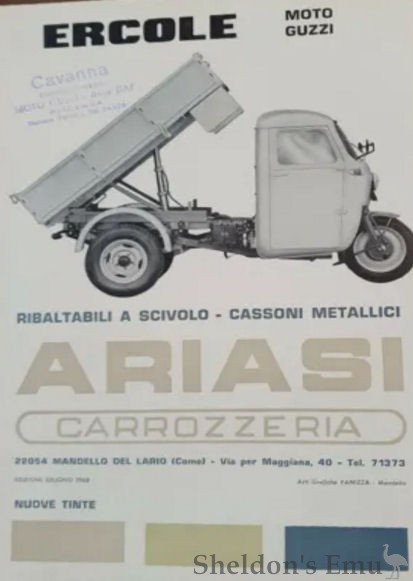 In the early 1950s Giuseppe Ariasi of Mandelo del Lario built motocarri and tipper trucks based on the Moto Guzzi Ercole, and possibly others.
