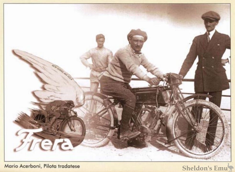 When the Tradate firm closed in 1936 Acerboni bought up quantities of Frera engines which he used to construct lightweight three-wheelers and motorcycles. This may account for the fact that Frera machines appeared to be produced in 1937, after the company had closed.