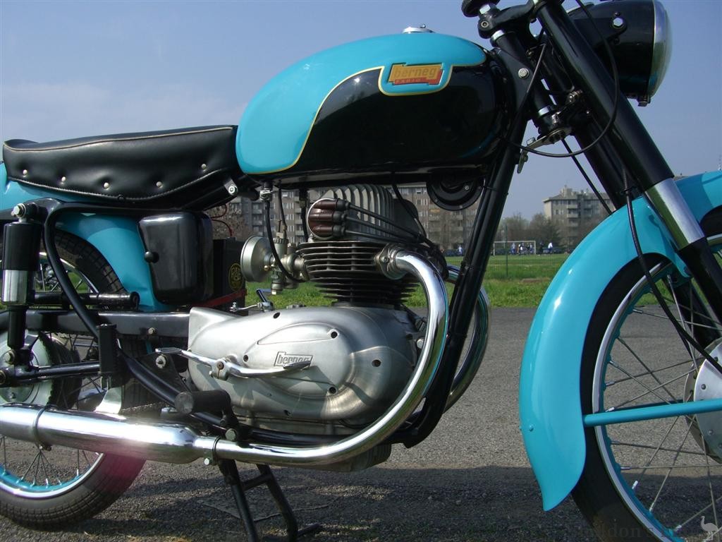 The Italian motorcycle market suffered a deep recession towards the end of the 50s due to the influx of cheap motor cars, and apparently the Berneg was prone to mechanical problems (see below). These factors led to a sharp decline in sales, and production ceased in 1961.