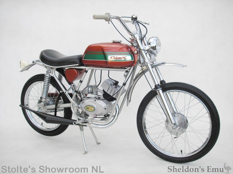 1960s to the early 1980s. Built a variety of models, mostly mopeds with single and 3-speed gearboxes, almost all with the GIMK marque (for gimkana, most likely) and Minarelli engines. Some were very sporty indeed.