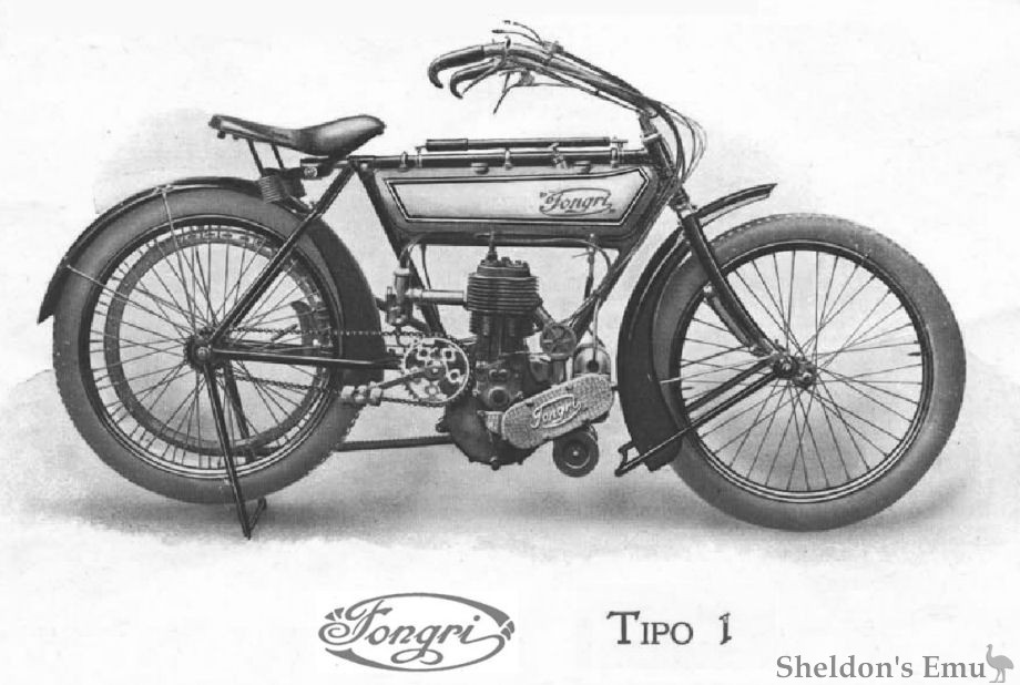 The first Fongri was a built in 1910 using a single cylinder four-stroke machine. Their second motorcycle, said to have appeared in 1913, was a flat twin.
