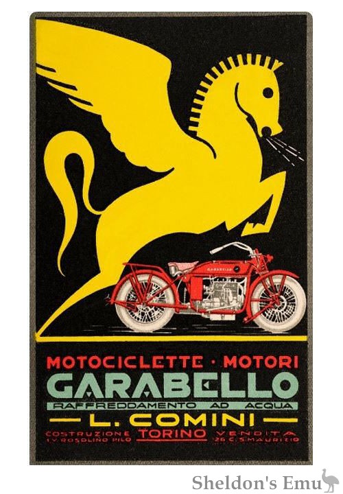 Francesco Garabello built his first belt drive machine using a single cylinder 240cc engine, later increased to 480cc. In 1922 they built a motorcycle with a four-cylinder 984cc engine with water cooling and shaft drive but manufacturing costs could not be born by the market.