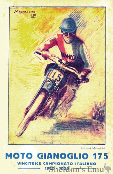 Born in Asti on November 11, 1886, Giovanni Gianoglio switched from bicycle racing to motorcycle racing in 1911, taking second place in a gruelling 600km race over roads best described as cart tracks. It was the beginning of a very successful career. In 1920 he took second place at the Sestriere Circuit riding a Fongri 500, and in 1922 he began racing with Frera before swapping to Della Ferrera. In 1923 he raced for Garelli, then moved to Maffeis in 1924, winning at the Monferrato Circuit in the 250 class.