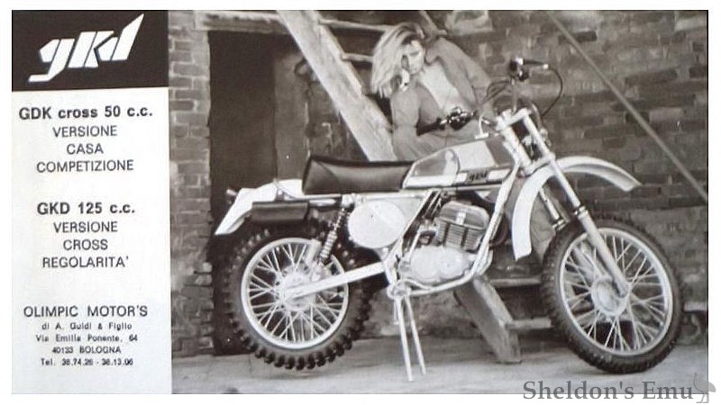 Initially a dealership named A. Guidi & Figlio in Bologna, in 1977 Guglielmo Guidi began production of four-speed mopeds including Furia, Ribot, Sirlad and Tornese models. The firm also built offroad machines of 125cc (Hiro) and 250cc, and minibikes.