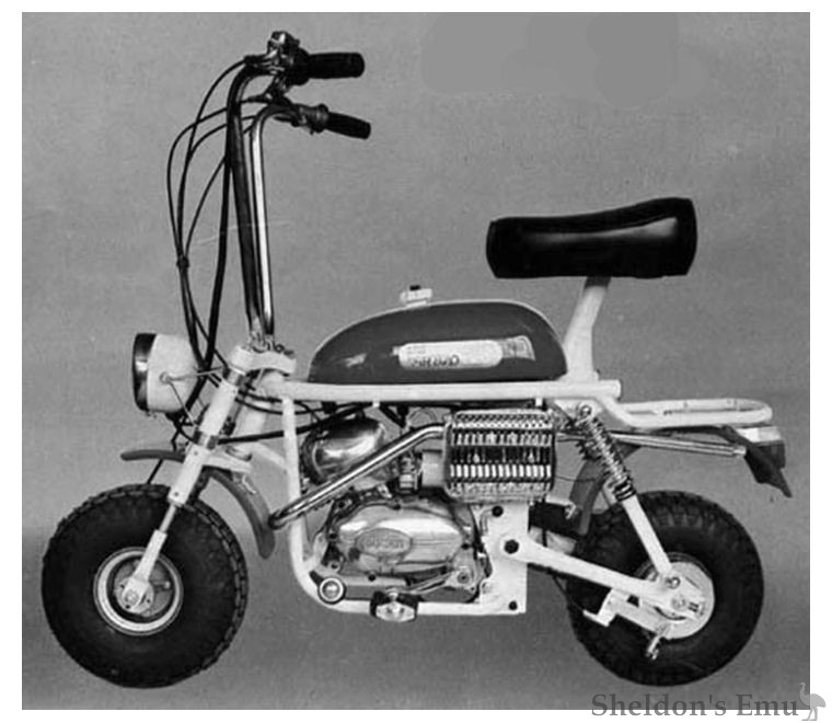 The Italian Mini Marcellino was manufactured by DMT (Dinamica Meccanica Tassinari). The original DMT machines were powered by a Franco Morini 47.6cc engine with pull-start, mounted in a rigid frame with very limited (if any) front suspension and tiny wheels. There was also a Super America believed to have been built at the Italian factory.