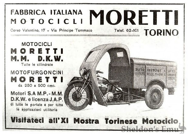 Giovanni Moretti began building motorcycles in Macerata (south of San Marino) using Ladetto, DKW and JAP engines.