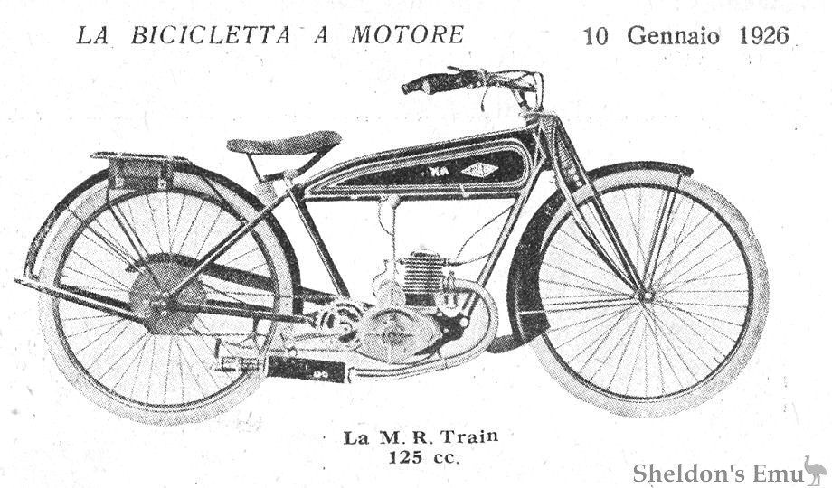 In 1922 Romeo and his partner Malagoli began to build motorcycles and in 1925 produced three models powered by 98cc and 125cc Train engines and with 'Raimondi type' transmission. Around 100 motorcycles were built before production ceased in 1928.