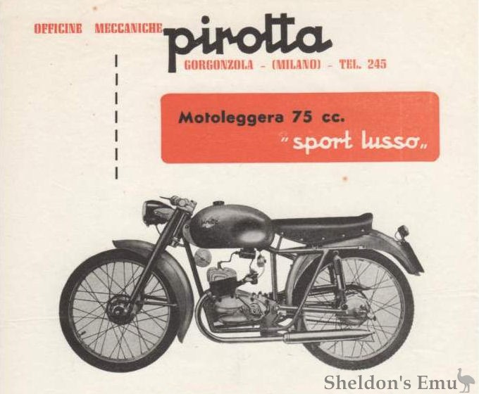 The Pirotta 75 was produced until 1957 but did not sell well, the Lombard company being better known for its bicycle engines, the famous Pirottino.