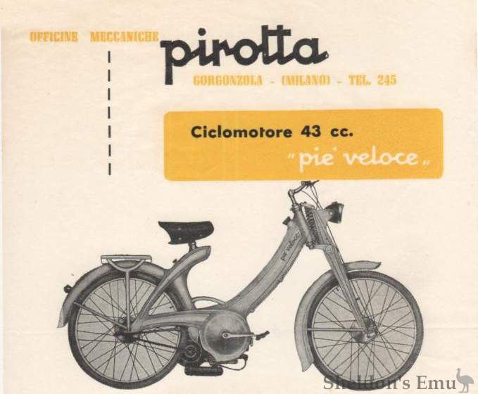 Pirotta was a company based in Gorgonzola, near Milan, which had been producing bicycles and accessories since 1929.