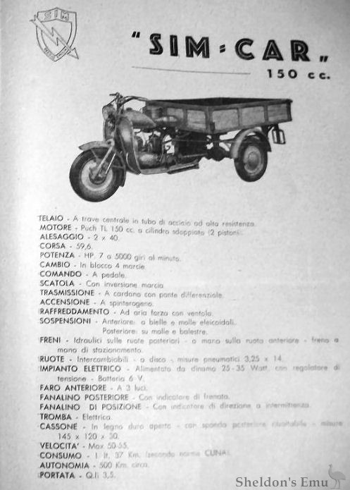 SIM-CAR 150cc commercial three-wheeler, based on the scooter c1952-1954