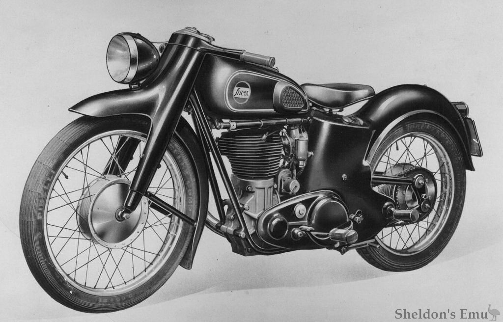 The Societè Torinese Industrie Lavorazioni Meccaniche (STILMA) built a 500cc single with pressed metal and tubular frame with a rather beautifully sculpted rear guard. The front fork is a telescopic type and it had a 21" front wheel and 19" rear. The OHV engine was fitted with a Dell'Orto carburettor and is believed to have been of their own design and manufacture. It has a solo saddle and a flapper seat atop the rear guard.