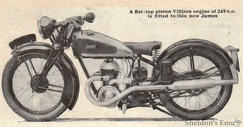 A flat-top piston Villiers engine of 249 c.c. is fitted to this new James