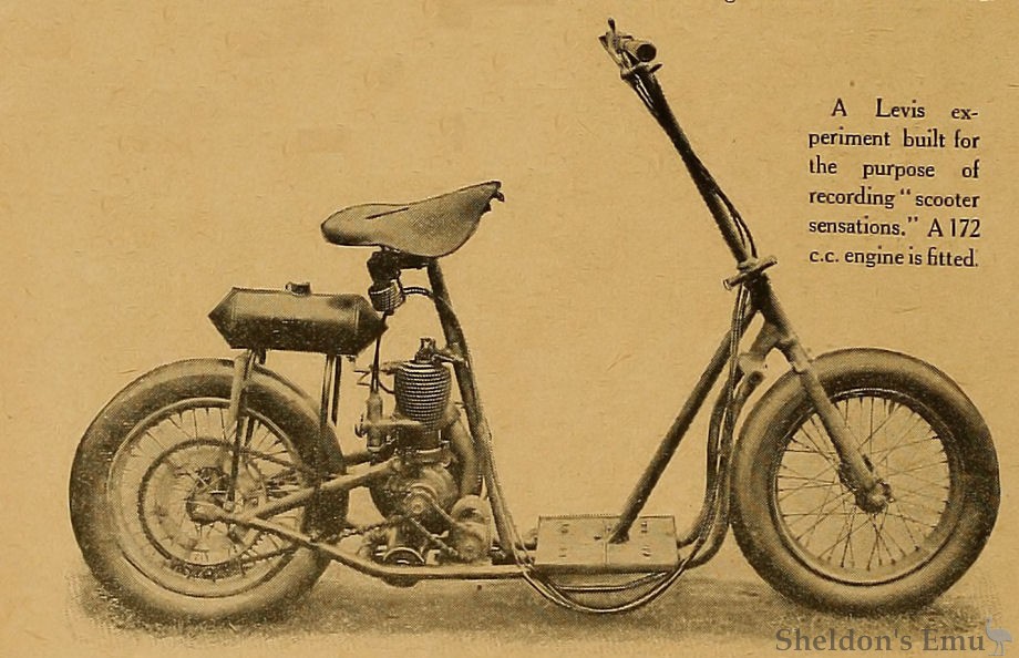 The public interest in scooters raised the curiosity of the makers of the Levis, and with an open mind as to the possibilities of this type of miniature machine, they decided to make a Levis scooter.