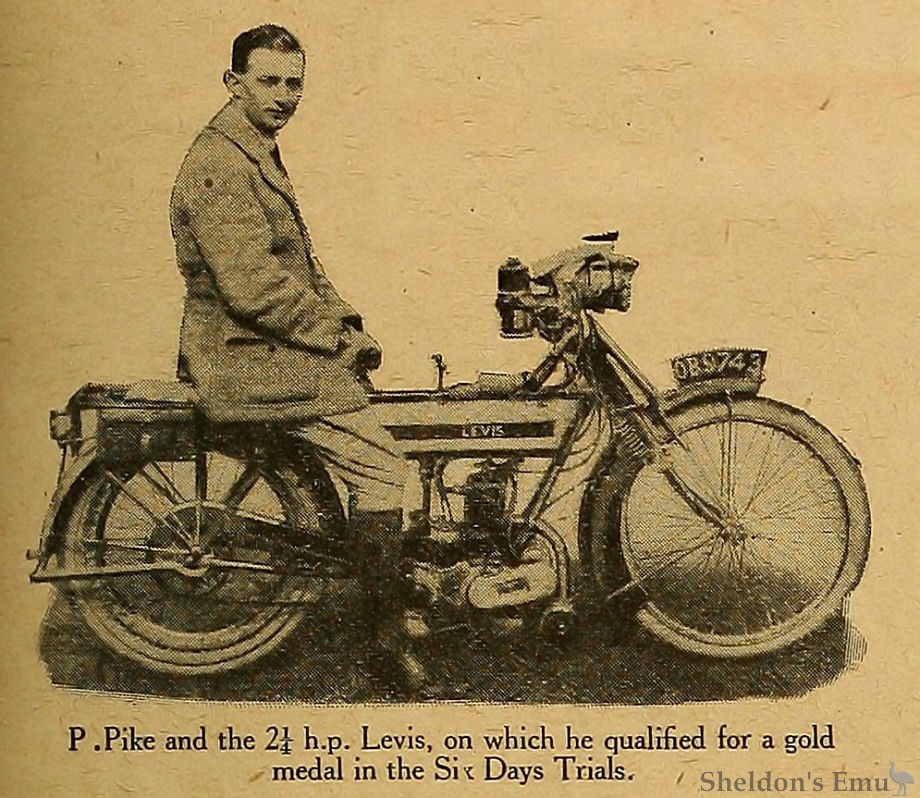 P .Pike and the 2 1/4 h.p. Levis, on which he qualified for a gold medal in the Six Days Trials.