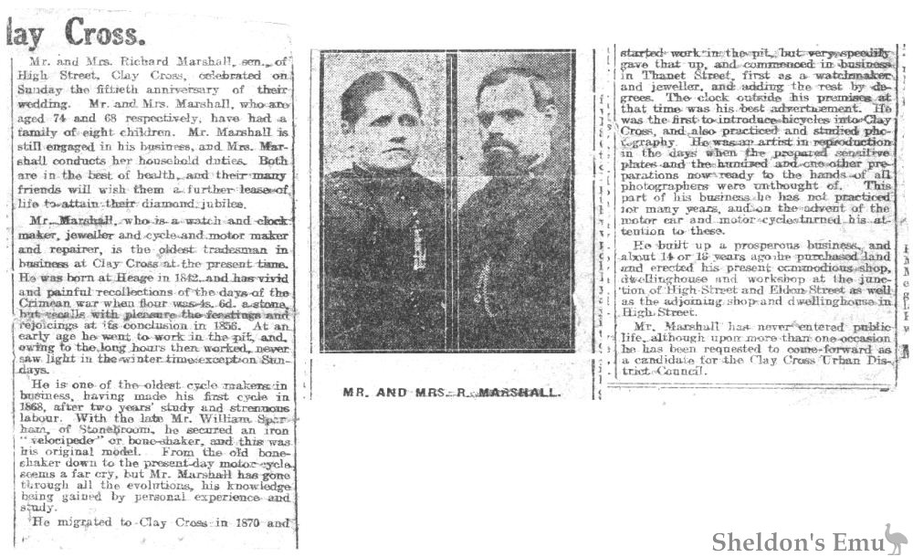 Richard Marshall was my Gr. Grandfather and I was born in Clay Cross and still live a short distance from where the motorcycles were built. I have been trying to find a surviving motorcycle, and some time ago found a company in the Netherlands I think was called Gedes but the bike had been sold and I received no reply to my email. I would like to make contact with the present owner of the bike in a hope to obtain any further information and pass on any information we can supply to the present owner if required.