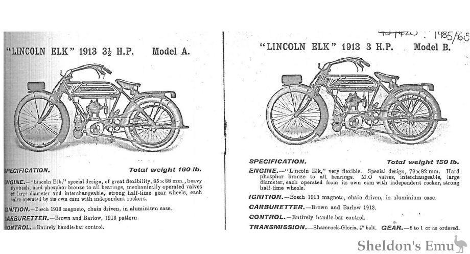 "LINCOLN ELK" 1913 3 1/2 H.P. Model B