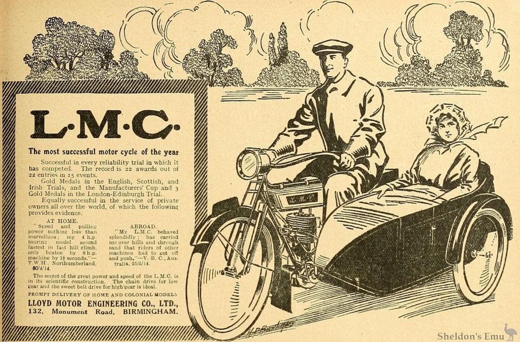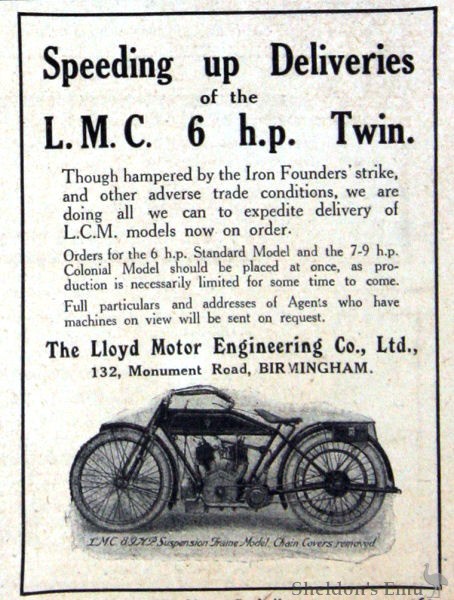 1914 Listed as motor cycle manufacturers. Speciality: LMC motorcycles.