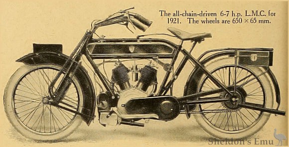 The all-chain-drlven 6-7 h.p. L.M.C. for 1921. The wheels are 650 x 65 mm.